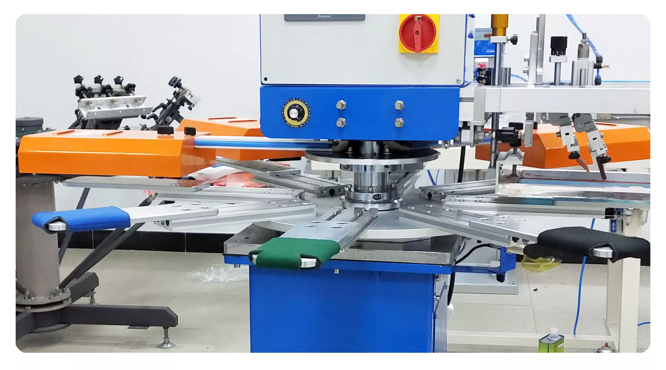 5. Pyörivä työpöytä sisältää kahdeksan asemaa: yksi täyttöön, yksi tulostukseen, kaksi kuivaukseen ja yksi purkamiseen, jolloin viisi asemaa voi työskennellä samanaikaisesti.