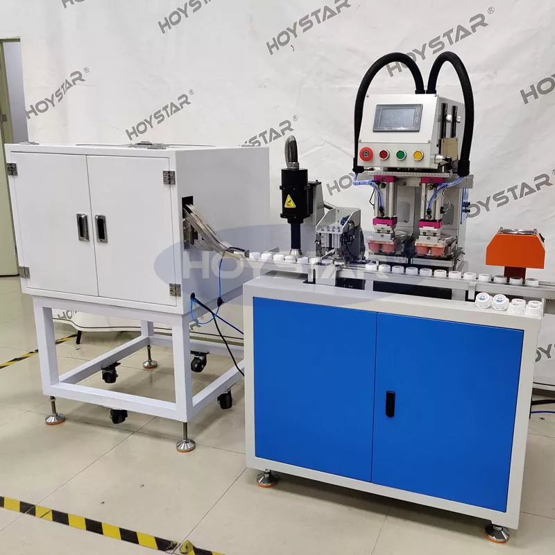 Ammattimaisena valmistajana HOYSTAR 2 Colors Bottle Caps Pad Printer with Plasma Treatment on tehokas ja käytännöllinen tulostuslaite, joka on suunniteltu erityisesti pullonkorkkien tulostamiseen. Kone ottaa käyttöön täysin automaattisen suunnittelun, joka on varustettu automaattisella syötöllä, automaattisella plasmakäsittelyllä, automaattisella tulostuksella, automaattisella kuivauksella ja automaattisella purkauksella vakaan tuotannon toteuttamiseksi ja työvoiman säästämiseksi. Se sopii pullonkorkkien tulostustarpeisiin sellaisilla aloilla kuin juoma-, kosmetiikka-, päivittäiset kemikaalit ja paljon muuta. Voi täyttää asiakkaiden erityiset painovaatimukset pullonkorkkituotteille.