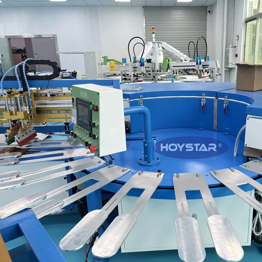 HOYSTAR on luotettava valmistaja ja toimittaja Kiinassa; Tämä HOYSTAR High Rapid liukumattomien sukkien silkkipainokone on suunniteltu tekstiilineuleteollisuuden sovelluksiin. Nopeudellaan jopa 800-1000 paria/tunti, se soveltuu liukumattomien sukkien, vauvasukkien, aikuisten sukkien, jalkapallosukkien jne. tulostamiseen. Pyörivällä työpöydällä varustettuna sukkien lastaus ja purkaminen on erittäin kätevää. PLC-kosketusnäytön ohjaus, erittäin helppokäyttöinen. Kuivausjärjestelmällä varustettu kone voi kuivata piin ja musteen hyvin.