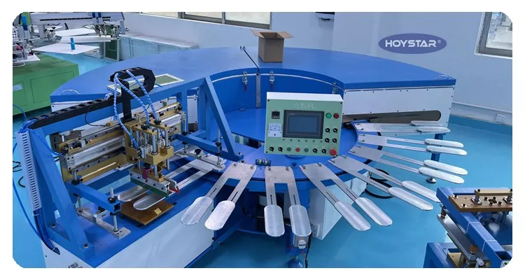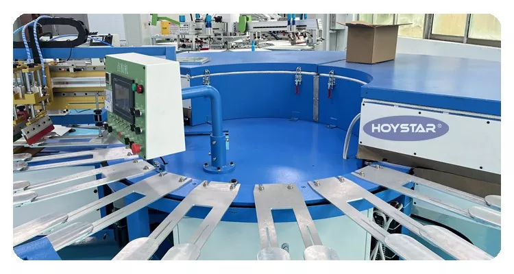 Ammattimaisena valmistajana Kiinassa haluamme tarjota sinulle erittäin nopean HOYSTAR-liukueste-silkkipainokoneen. Koneemme käyttävät PLC- ja kosketusnäytön ohjausta, ja niitä käytetään pääasiassa erityyppisten sukkien tulostamiseen. Kone on varustettu kuivausuunilla, joka pystyy kuivaamaan piin ja musteen hyvin.