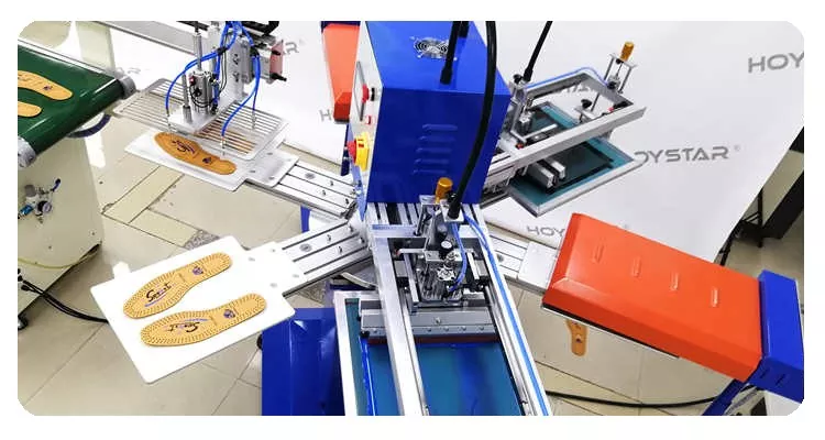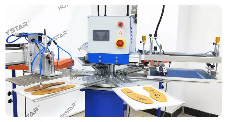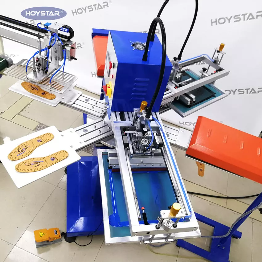 Ammattimaisena valmistajana Kiinassa haluamme tarjota sinulle tehokkaan automaattisen 2-väripainokoneen kengänpohjalliseen. Jopa 1000 kappaleen tuotto tunnissa tämä kone on suunniteltu tulostamaan merkintöjä tai tarroja tuotteisiin. Siinä on pyörivä työpöytä kätevää lastausta ja purkamista varten.
