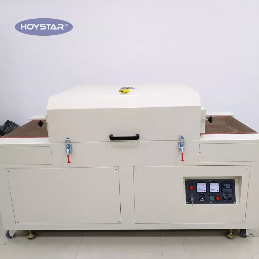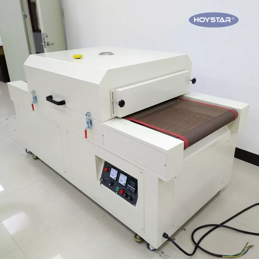 T-paidan IR-tekstiilitunnelikuivaimen valmistaa HOYSTAR-tehdas. Kiinalaisena valmistajana ja toimittajana olemme toimittaneet sen korkealaatuisena tukkukauppiaille kaikkialla maailmassa. Tämä HOYSTAR IR -tekstiilitunnelikuivain T-paidalle, jossa on kuljetinhihna, se on suunniteltu laboratorio- ja massatuotantoon. Tässä kuljetinhihnajärjestelmässä on hiljainen vaihtelevanopeuksinen moottori, kun kuivaimessa on erilaisia kuormia, nopeutta säätävä ohjain ja kuljettimen nopeus ovat tasaisia, se sopii erikokoisille tavaroille. Se soveltuu tulostukseen, maalaamiseen, kuumakovettuvaan liimaan, mustesuihkutukseen ja T-paitatulostukseen jne.