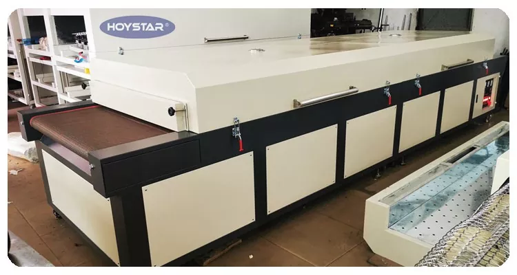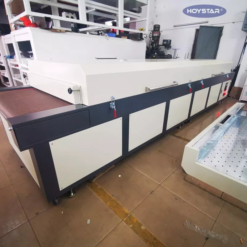 Ammattimaisena valmistajana Kiinassa haluamme tarjota sinulle tehokkaan HOYSTAR-suuren infrapunakuivauskoneen kuljetinhihnalla. Soveltuu erilaisten tuotteiden, kuten tekstiilien, lippujen, bannerien, alumiinilevyjen, lasin, paperin ja muovin kuivaamiseen prosessien, kuten silkkipainatuksen, maalauksen, kuumakovettuvan liiman, mustesuihkutulostuksen ja muiden prosessien jälkeen.
