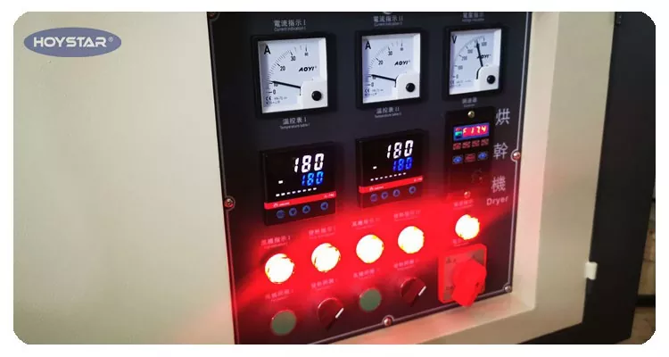 Kone on varustettu käyttöpaneelilla. Kuivauslämpötilaa voidaan säätää vapaasti vastaamaan kuivausvaatimuksia.