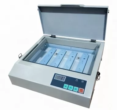 Alla on työpöydän UV-altistuskoneemme, jolla on pieni massa, esteettinen ulkonäkö, alhainen hinta. Pieni teho, helppokäyttöinen. Se soveltuu korkealaatuisen kuparisinkkilevyn ja teräslevyn valmistukseen